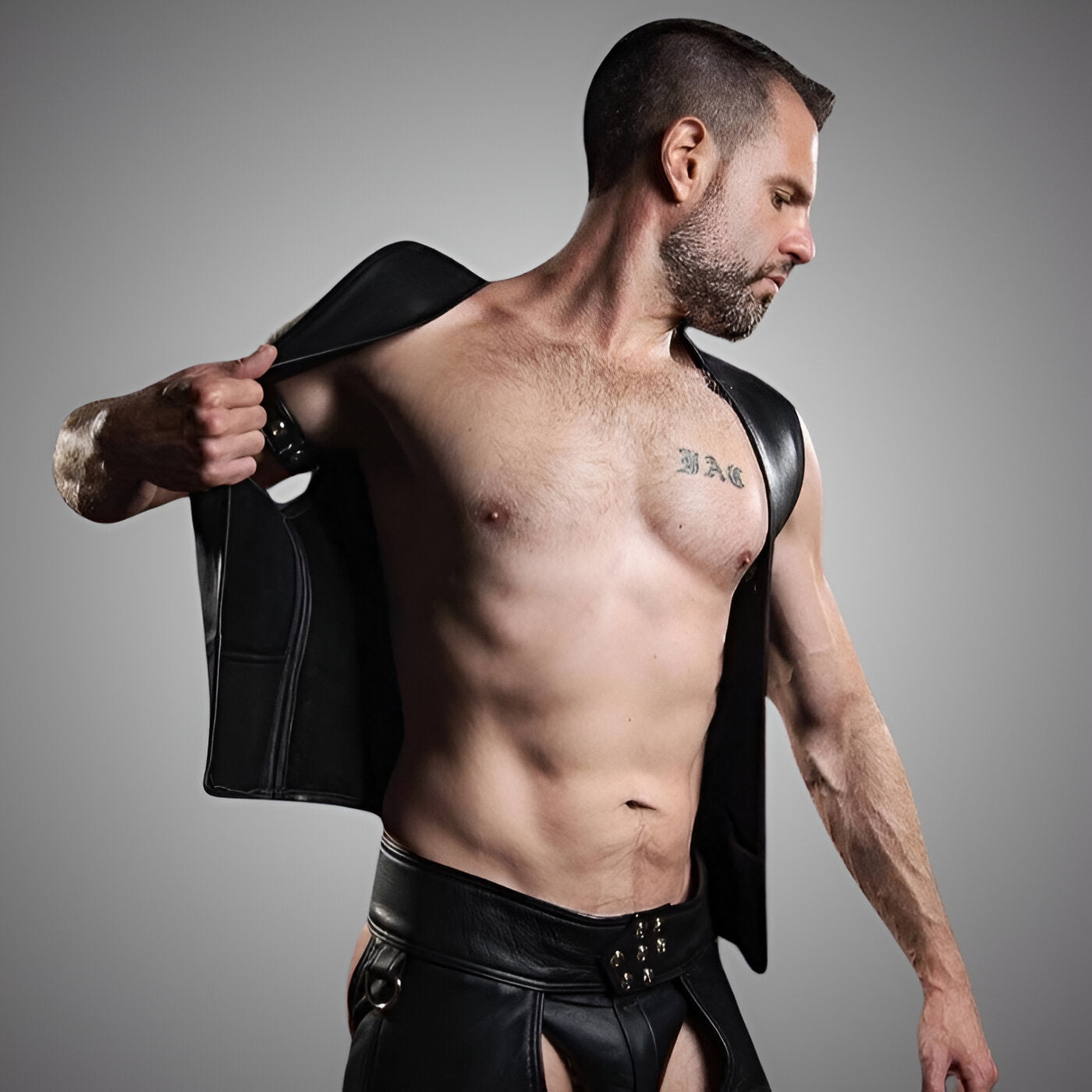 Gear up in second-skin leather. From muscle-hugging harnesses to tight fetish pants — this is where desire takes control.